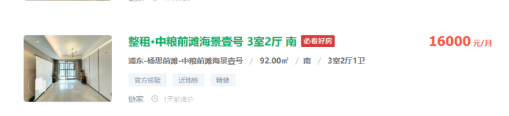 那附近能租多少钱?我们拿东方体育中心周边次新房的相似面积来参考一下: