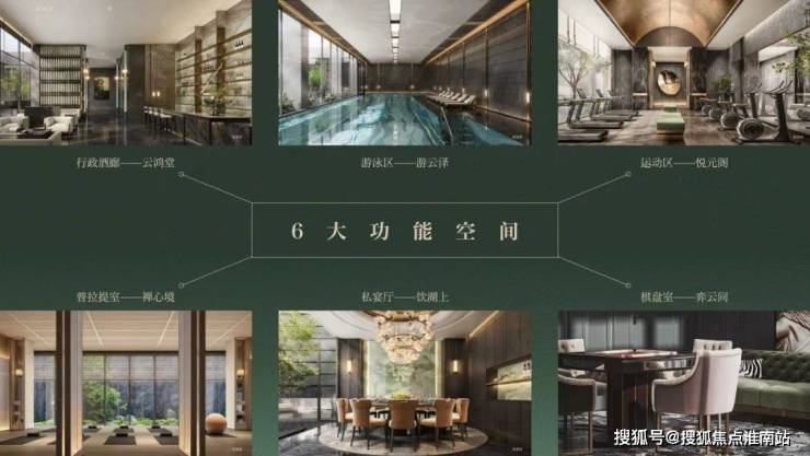 社区公区以私密低密改善生活为思考,打造1900余平社区会所空间-鸿湖荟,以东方雅序的手法融合了六大功能空间(行政酒廊、游泳区、运动区、普拉提室、私宴厅、棋牌室)。