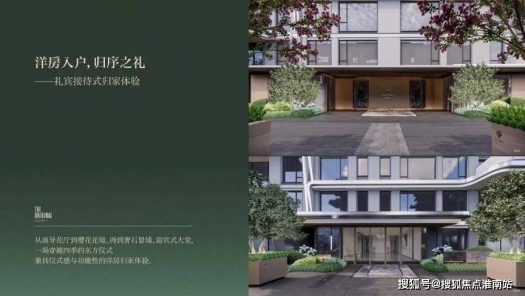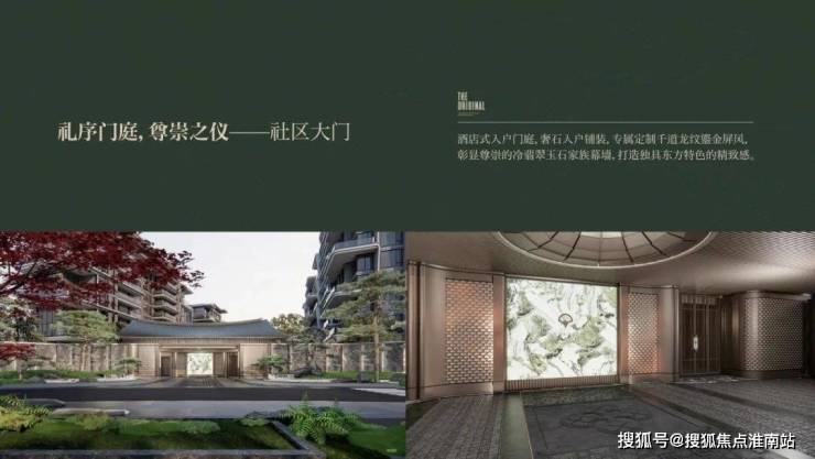 整体南北分区造园,北为洋房南为合院。分三进礼仪入园:一进礼仪门厅,二进天地院落,三进生活雅院,并设九处融合了诗意东方的园景融汇于三进,打造东方礼序归家。