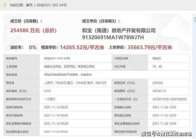 大和和风雅信花园,即,苏地2021-WG-64号地块项目,位于相城区高铁新城南天成路南、求索街东,是2021年11月24日,大和房屋以底价254586万元竞得,成交楼面价14266元/平。