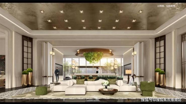 项目西大门约95米山水画卷门堂,就是开启归家仪式感的第一步,主门两侧采用黄古铜饰面,融合细纹处理,配合深色亚光奢石,不负门庭的高昂规制。项目匠造“一园、两轴、九境”沉浸式美学园林,整体通过乔木、灌木、地被的多层次设计,形成自然的植物分布,让居者跟随季节的流转,沉浸欣赏缤纷多样的景色。