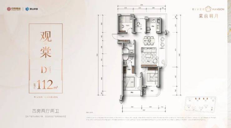- 112㎡四房边套:双阳台+洄游动线,主卧套房配置独立衣帽间。