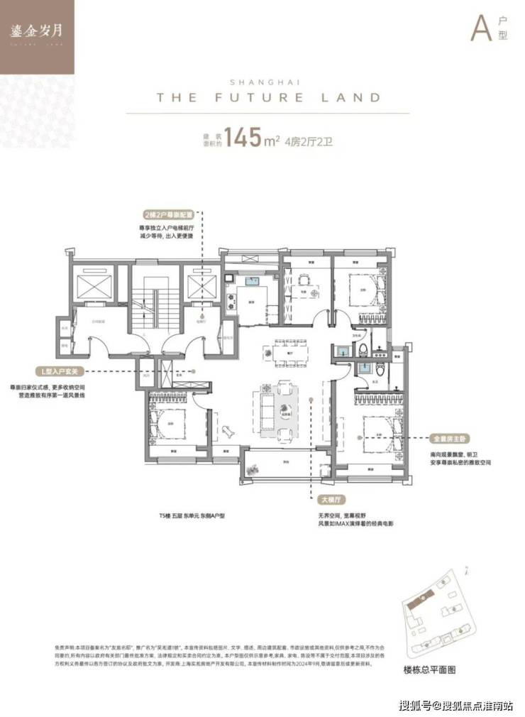 3、建面约145㎡4房:奢阔横厅,定制多元生活场景