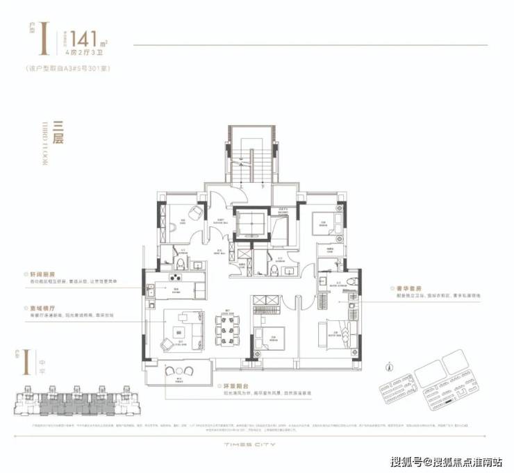 华润置地时代之城高层产品将百平上下的改善户型做出了轻奢级的居住体验,把约133㎡的改善四房做出了豪宅的尺度感。