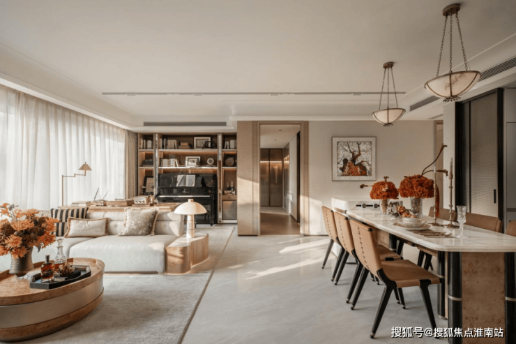 ▸ 贝金米黄石材+彩釉透光云石,把奢宅审美刻进建筑DNA