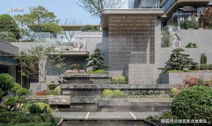 其中下沉水院作为关键归家场景之一,以水为引,叠瀑飞流,对景廊架,还有风景连廊,搭配波光粼粼的镜面水景和绿植点缀,随手一拍,满满松弛感。