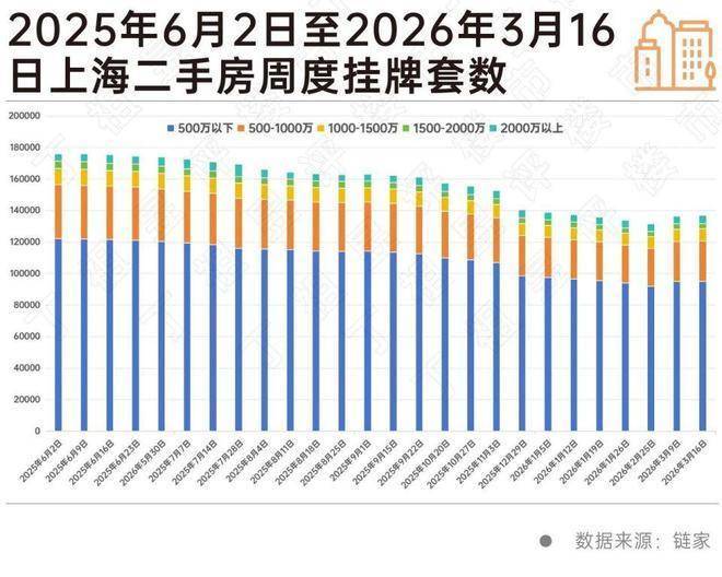 截至2026年3月16日,上海二手房周度挂牌量已较2025年6月2日下降22.23%。