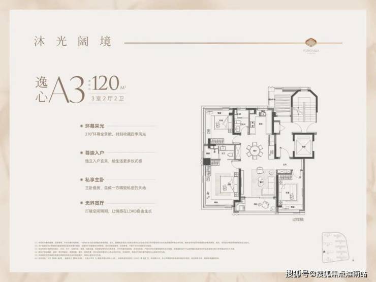 优势是户型非常方正,客餐厅尤其是餐厅空间很大;私享电梯厅和全屋飘窗设计大大提升了空间实用性,边套更是做到了南北卧室都是270°转角飘窗,非常吸睛: