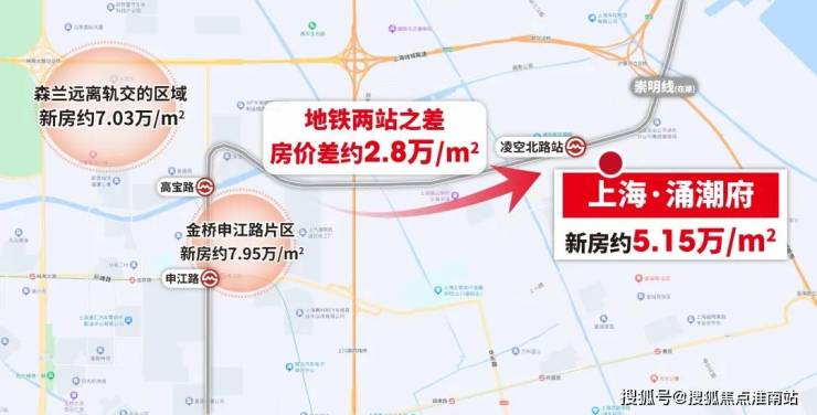 项目距离崇明线(在建)直线约600米,这个距离恰到好处,既不会受到轨交噪音的直接影响,也能做到步行可达。