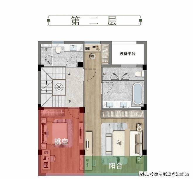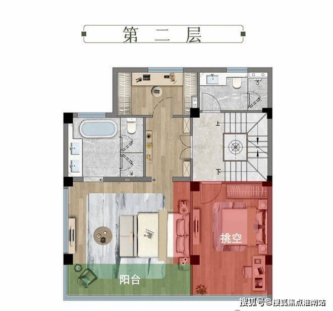 二层,可实现多样化布局。可改约6.4米挑高+南向阳台,根据家庭需要自由定制,可以是2房布局,也可以是家庭第二客厅,工作室、收藏间,灵活性较强。