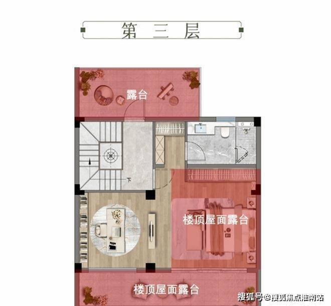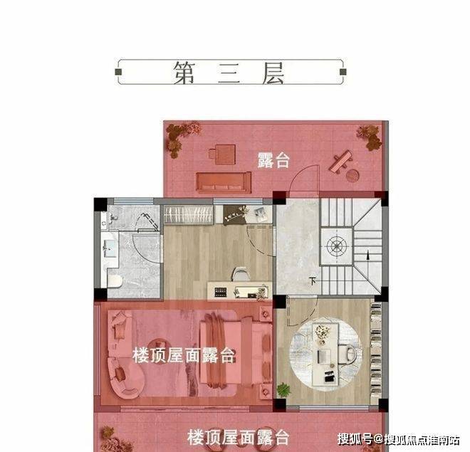 三层,整层套房设计。该层赠送约23㎡的南北双向大露台,这里作为建筑的“空中延伸空间”,兼具视野开阔、采光充足的优势,无论是打造成亲近自然的露台卧室,还是多功能的生活场域,都能极大提升居住体验。