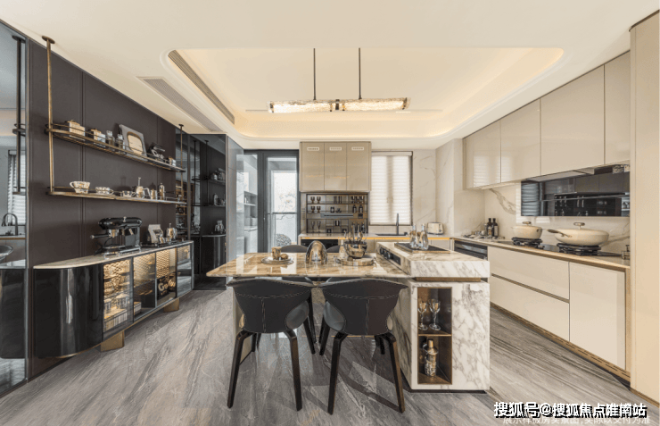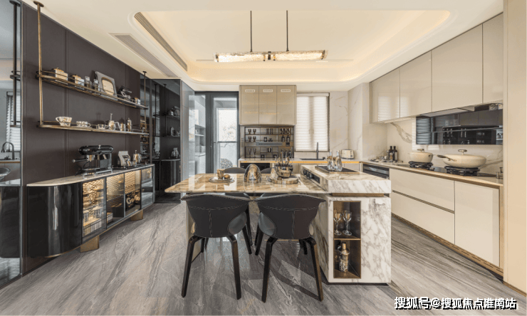 但望潮却继续拉满改善调性,方太厨房三件套、蒸烤一体机、地暖新风中央空调改善三件套,以及主卫智能马桶、智能家居等加分项,全部配齐。