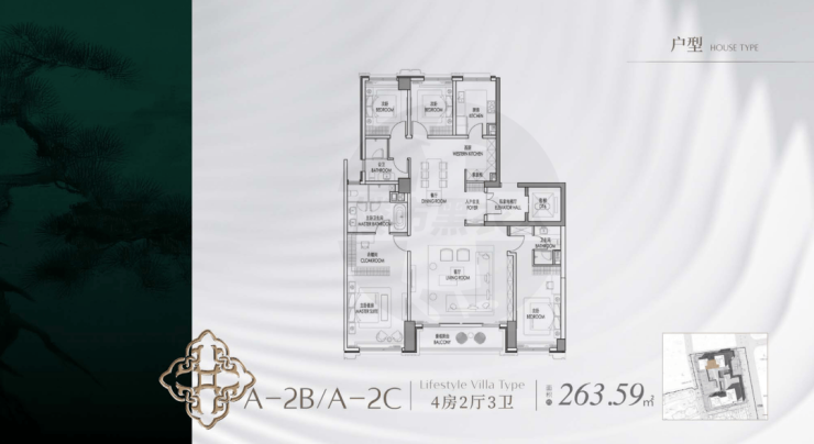 185㎡ 4 房 2 厅 3 卫:均价17.6 万 /㎡,总价2220 万起