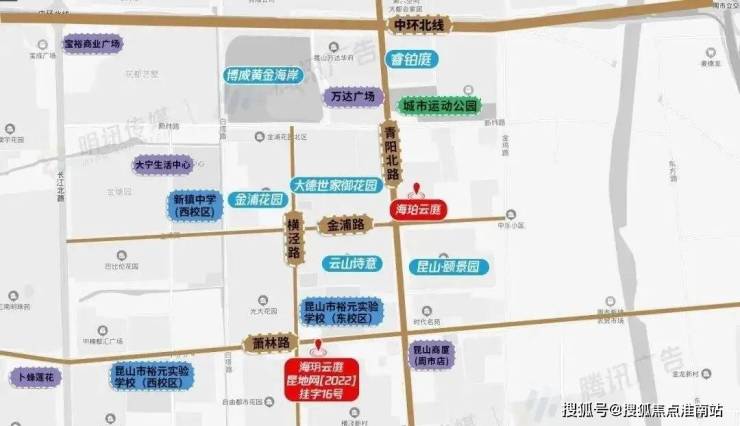 海珀云庭位于昆山青阳北路东侧、金浦路北侧,占地面积38378.2㎡,容积率1.8,规划10幢15-17F住宅楼,仅418户。