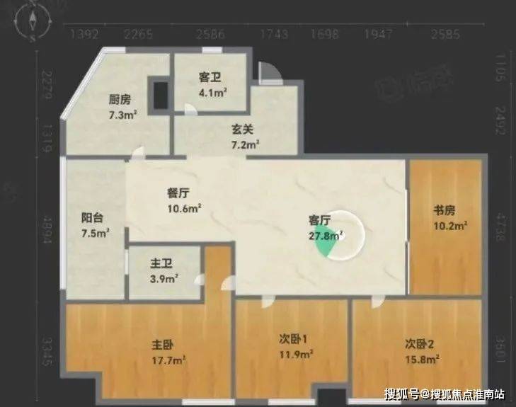 117.19平户型:精致全明—3房2厅1厨1卫1阳台