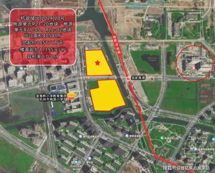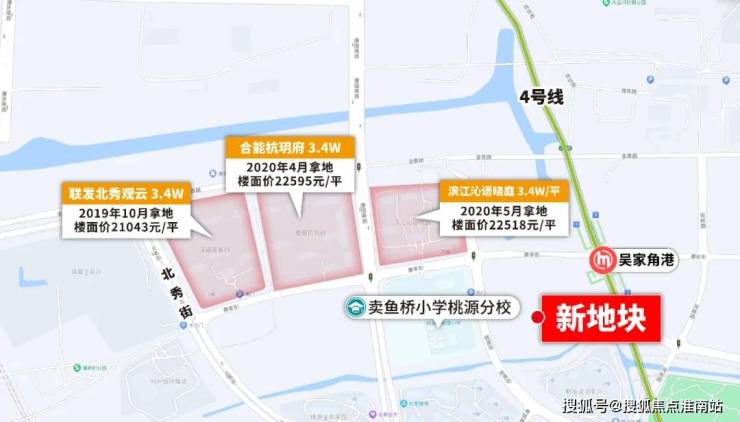 今年3月29日,桃源单元R21-20地块、桃源单元R21-05、R22-02地块迎来出让,为该板块正名了!它比桃源板块任何一个项目的位置都要好,地铁4号线吴家角港站、卖鱼桥小学0距离,限价3.4万/平!由建发底价拿下。