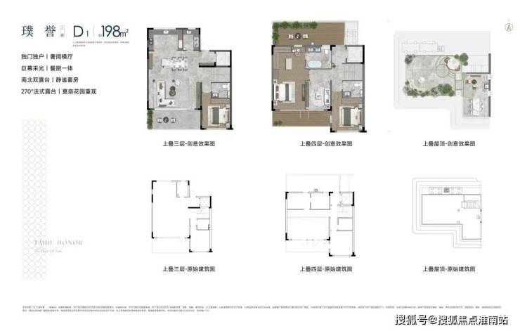 叠墅上叠建面约198㎡,独门独户,拥有奢阔横厅,餐厨一体,南北双露台,更有270°法式露台,可打造莫奈花园。
