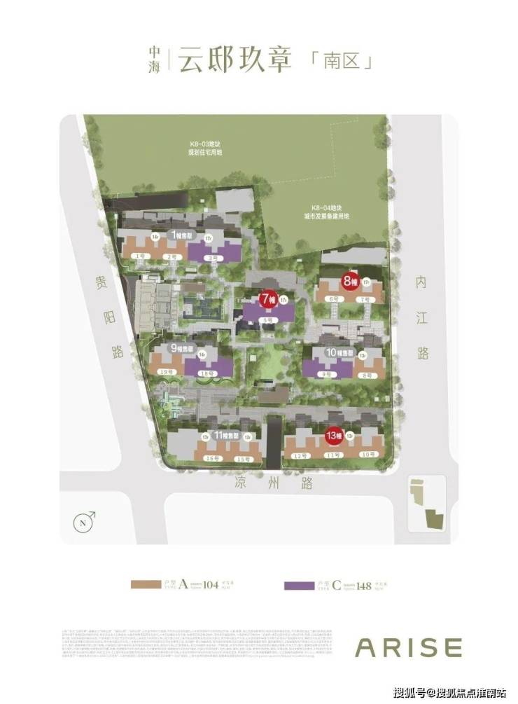 南区有7栋楼,以下为南区效果图及南区景观: