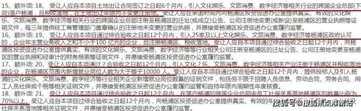 ①在项目建成验收之日起6个月内,引入文化娱乐、文旅消费、数字经济等相关行业的跨国企业总部,落户杨浦,且税收落地,在土地出让年限内不变更注册地;