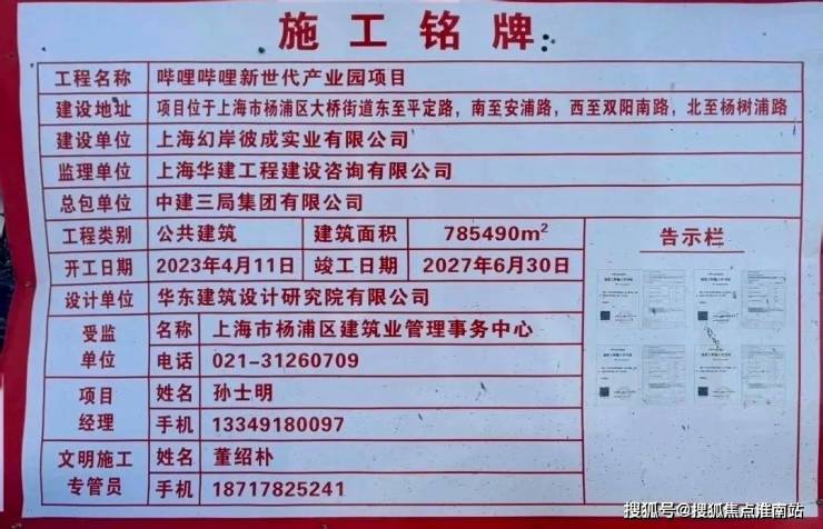 B站新世代产业园项目施工铭牌示意图,图源网络