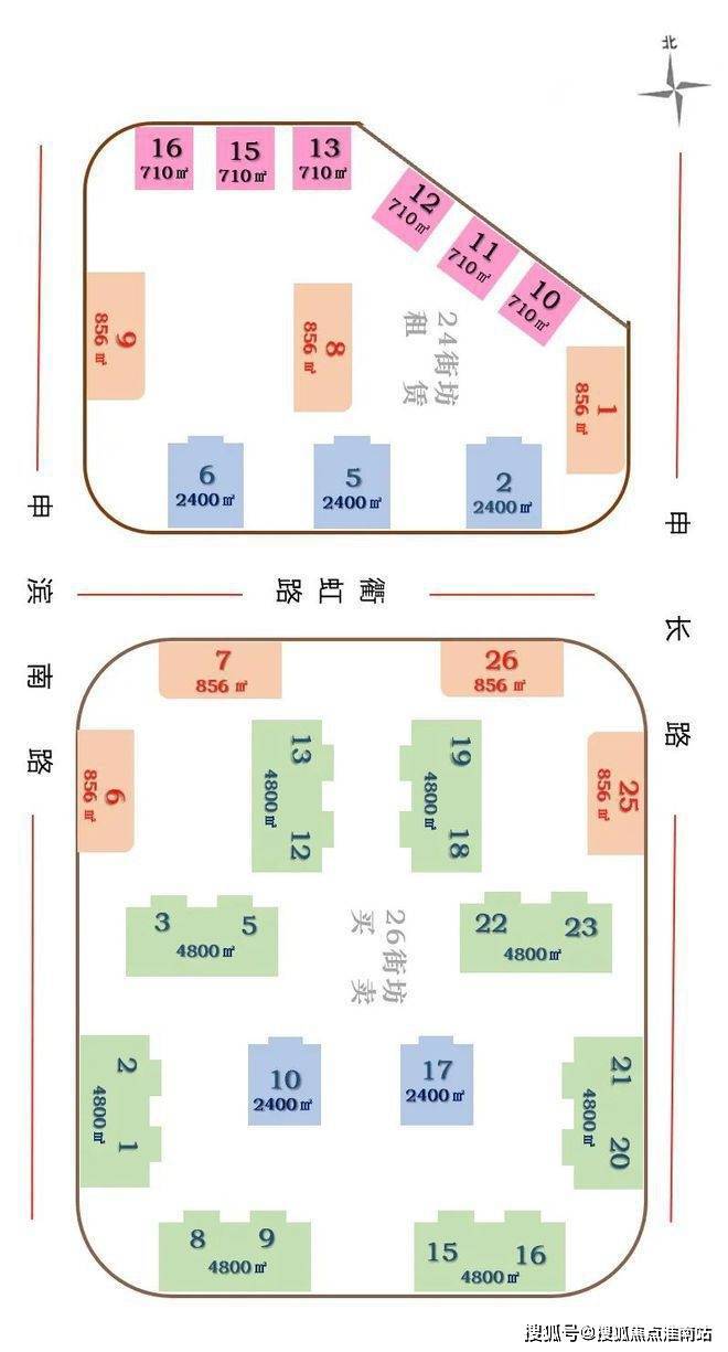 项目分为南区和北区,北区为一期,南区为二期。一期北区共有12栋,单栋面积710~2400㎡已经交付使用,以出租为主;二期南区共有14栋,单栋面积约为856~4800㎡,以出售为主。