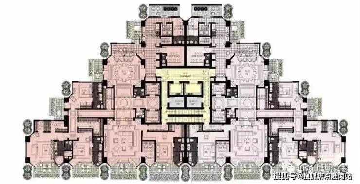 外部设计已经足够令人震撼,内部户型更是壕到无法想象。独特的金字塔设计,仪式感超强。所有住宅单元都尽可能南向,拥有360°采光的同时不浪费一丝一毫的江景。