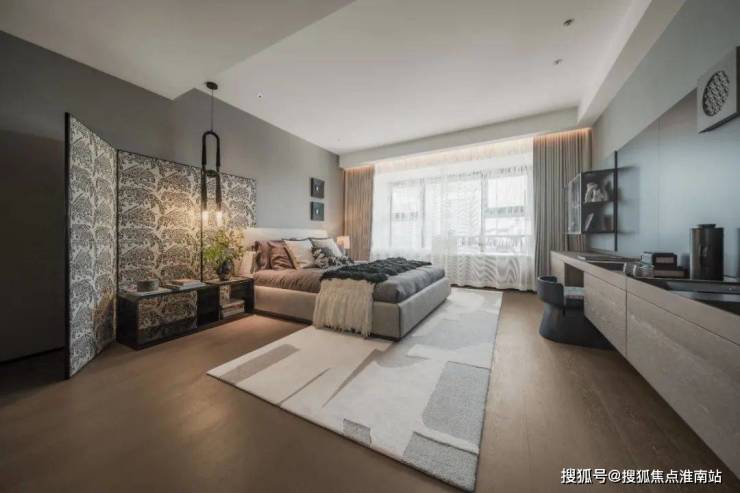 动区在中间,最大的好处是“0过道”,使得整个空间没有面积浪费,显得更大。再加上南侧的大阳台,更是扩大了视觉效果。
