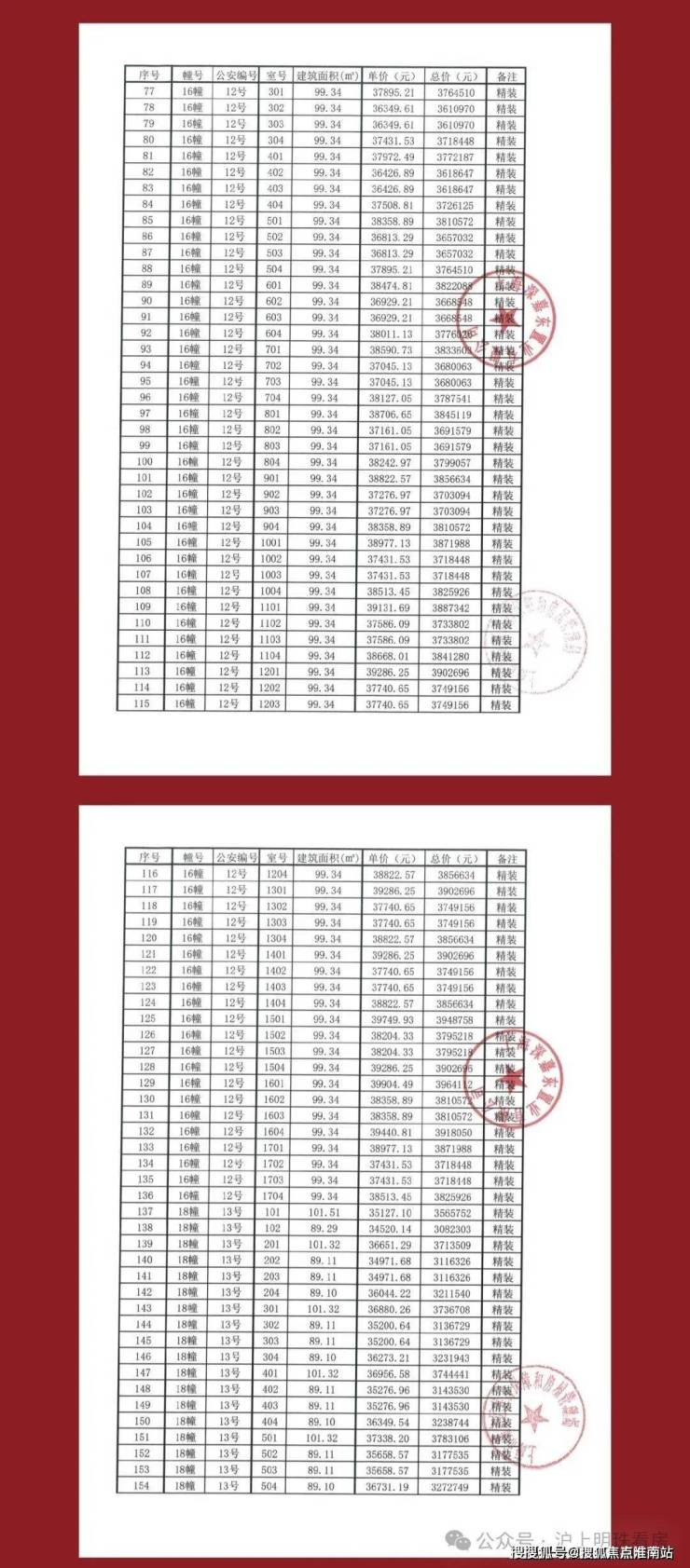 项目一房一价表👇