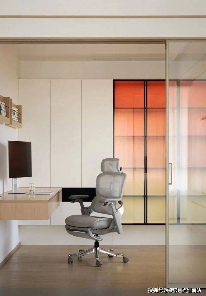 一间卧室被改造成了书房,拆除了与客厅之间的墙体,采用玻璃移门进行隔断,形成了一个可开合的书房空间,既保持了通透感,又增加了功能性。