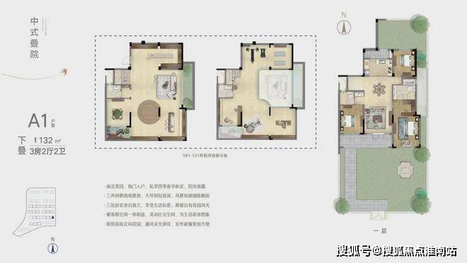 中式叠院:建筑面积约110-230㎡,含独立花园与露台设计,下叠庭院面积达室内2倍,总价约285万起