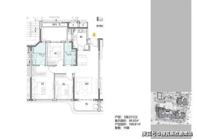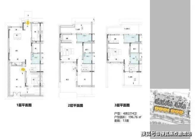 3地块容积率2.33,由一栋18层的小高层和两栋6层的花园洋房组成,共92套房源,产品建面约108-196㎡.
