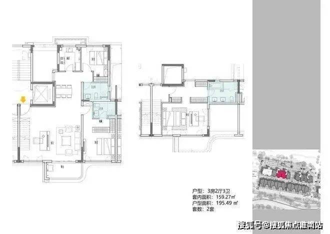 2地块容积率2.94,只有一栋小高层,共67套房源,产品建面约108-148㎡.