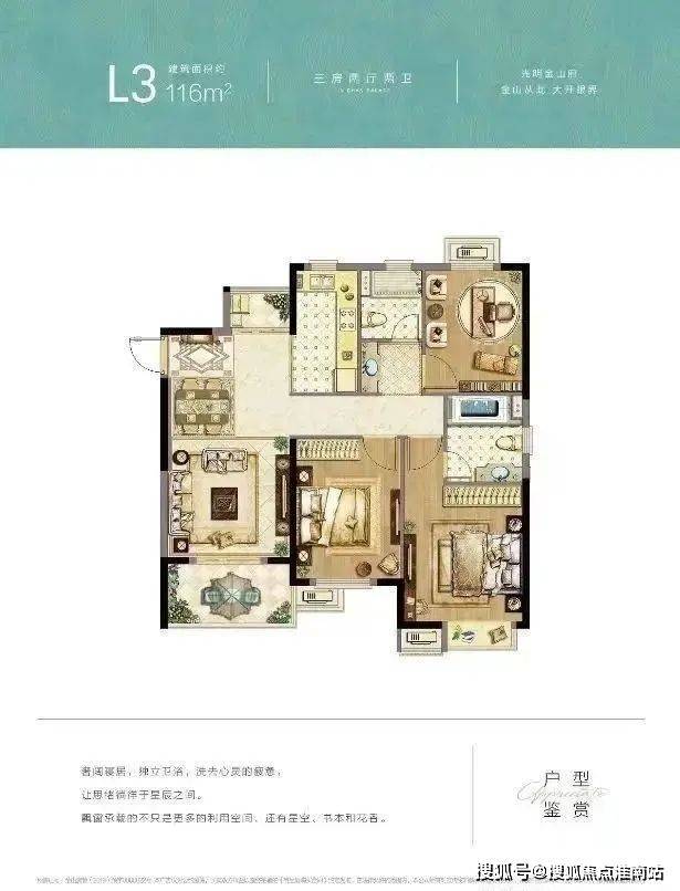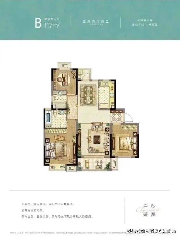 6.户型三开间朝南,南北双厅双阳台,尽揽小区四季美景