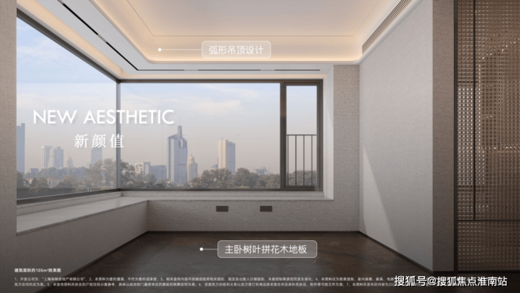 项目大量使用奢石设计,客厅四边弧形天花、主卧树叶拼花地板、精致优雅的骨骼线设计,都是开发商花费更大成本和耗材去呈现更美的视觉体验。