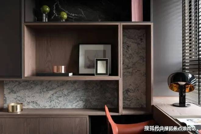 ▲书房定制上书架,靠窗定制书桌,在书架上摆着各式各样的精致小饰品,搭配橙色的办公椅,也为主人带来了一个端庄而轻松的工作与阅读空间。