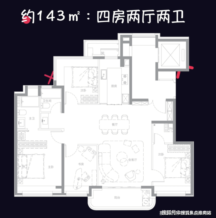 户型方面,二批次即将加推的主力是建筑面积约105平3房、建筑面积约143平4房两种户型。