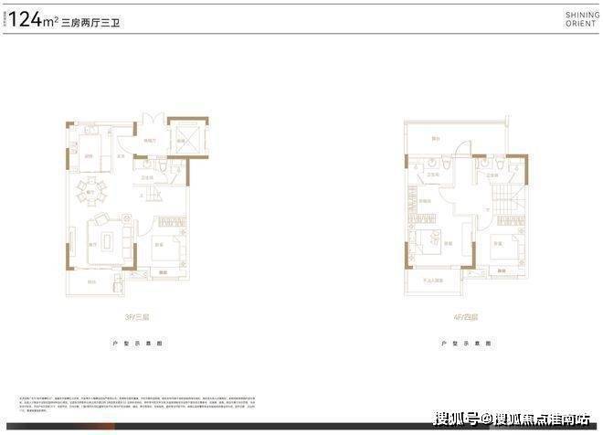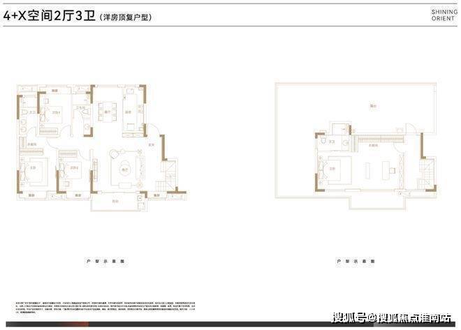 叠墅总高四层,设计了邻里空间,单元门设计也是非常的大气。上叠125㎡三房两厅三卫,顶楼闷顶层等可以拓展空间;下叠140㎡四房两厅三卫,另有超宽裕的赠送面积。