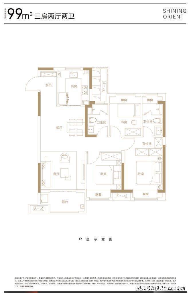 建面约99平㎡三房两厅两卫