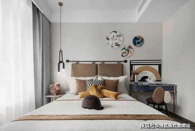 父母房的空间设计,龙湖天琅售楼处电话☎:400-887-5663(预约热线)✔✔✔色调更为素雅,靛青之色还有米白之色,都让空间更契合父母的审美,沉稳之余,更具一派生活的舒适感。