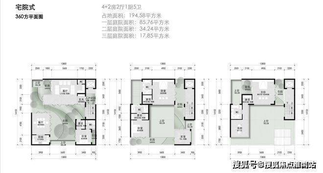 建面约290-360㎡宅院式合院