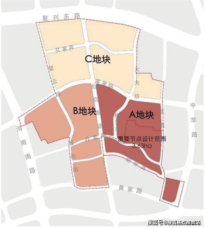 整个乔家路地块由于规模较大,总体方案设计范围:东至中华路,南至黄家路,西至河南南路,北至复兴东路,用地面积约24.11公顷。