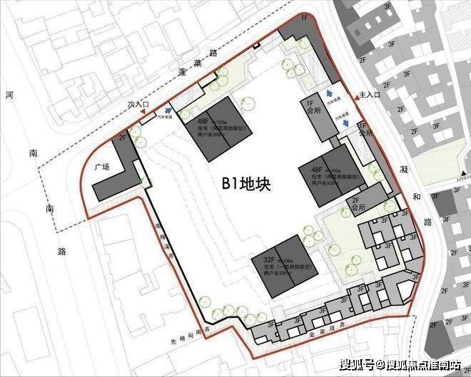 小高层主要位于右下角的260B-01地块,用地面积4750.3㎡,规划有小高层、商业、上海救火联合会遗址和火警钟楼及其他配套建筑。