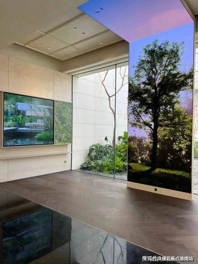 杭州滨江万科朗拾滨屿府售楼处电话:400-9966-224【预约热线】宝门廊后面,是超大的落客庭院,打造了叠瀑石林中央水景,还有2棵超过10吨的丛生大朴树,非常吸睛。