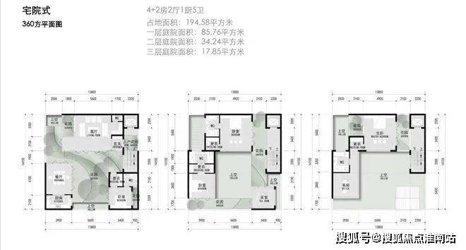 建面约290-360㎡宅院式合院;