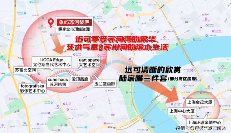 没顶画廊、suhe haus苏河皓司、苏富比空间、UCCA Edge尤伦斯当代艺术中心等艺术机构也都选址苏河湾,进一步升华了苏河湾人文、艺术气质。