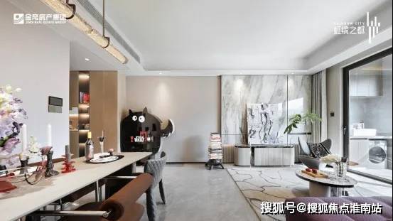 香槟金吊顶、独具辨识度的仿玉石陶板