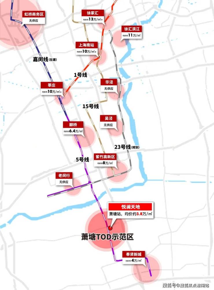 悦澜天地位于奉贤TOD示范区,萧塘站同样是以TOD模式开发,项目西侧是与项目同一家开发商打造的约17万方综合体。