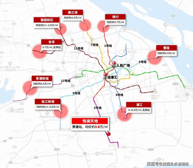整个5号线萧塘站周边项目大多由奉贤交能集团打造的,包括约17万方综合体:奉贤新城18单元01-B-02区域地块。