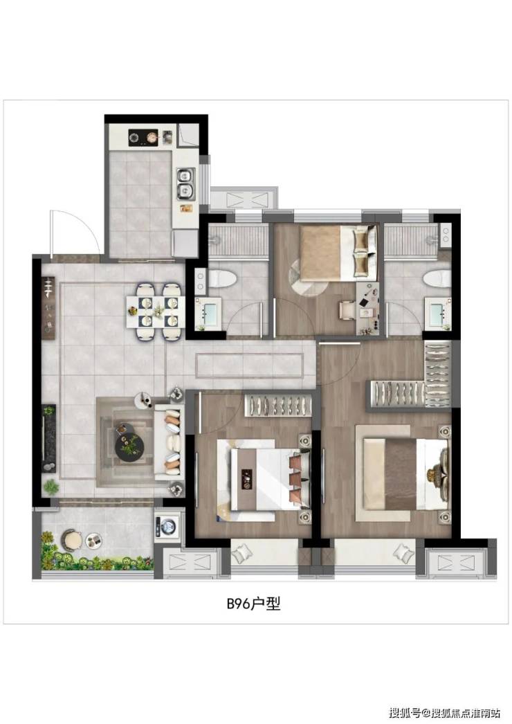 建面约96㎡3房2厅2卫