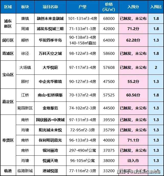 此类地铁盘的入围门槛相对较高,总价相对较低的项目更甚,如安亭某盘前期入围分达到了60.1分。